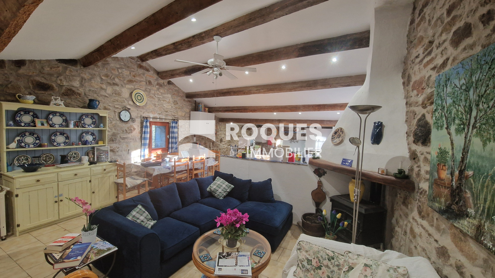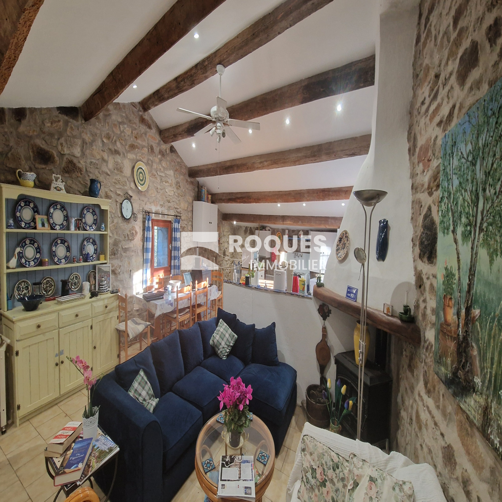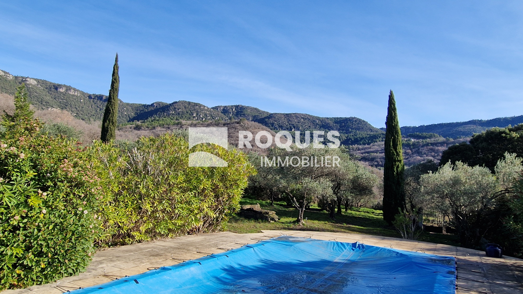 15 minutes Est Lodève, maison en pierre indépendante, 2 niveaux, de type 5, 109 m² habitables, sur terrain attenant et non attenant de 2235 m², le tout en bon état et comprenant :