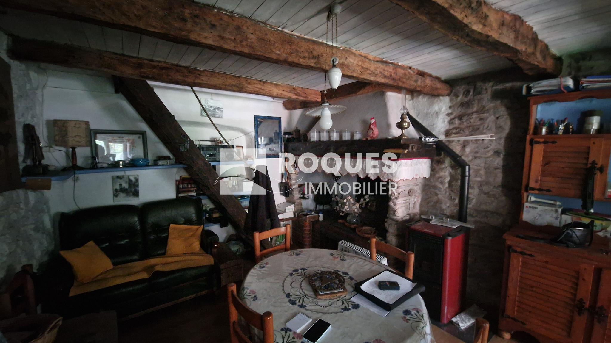 1e étage : Accès par terrasse de 4 m², Cuisine-séjour 19 m² plus poele à pellets