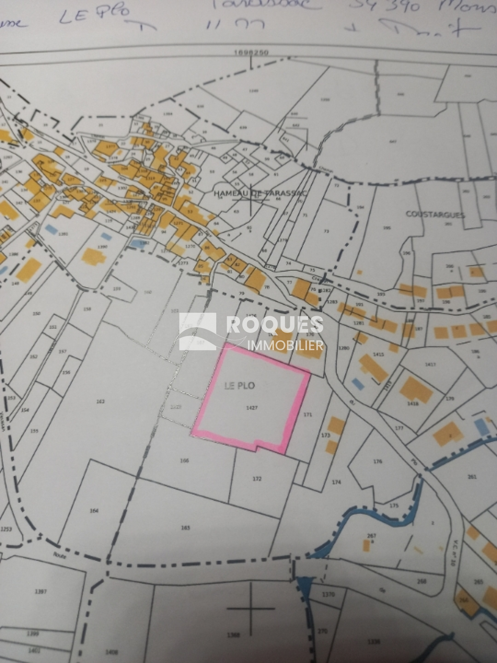 Commune de Mons la trivalle, A Vendre, terrain de loisir d'une surce totale de 3115m² avec réseaux à proximité situé dans un superbe environnement!!!!