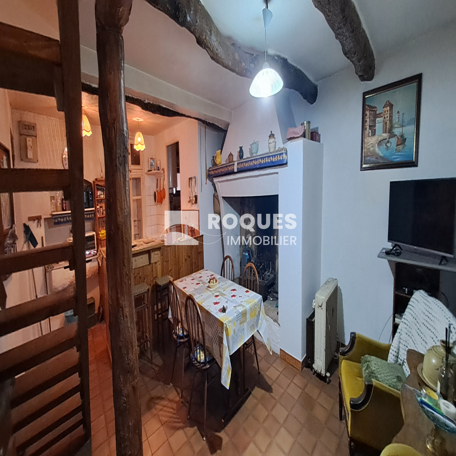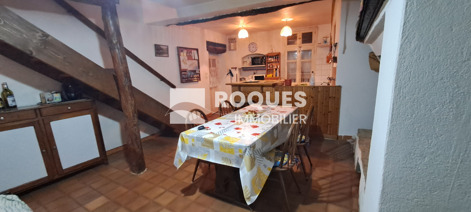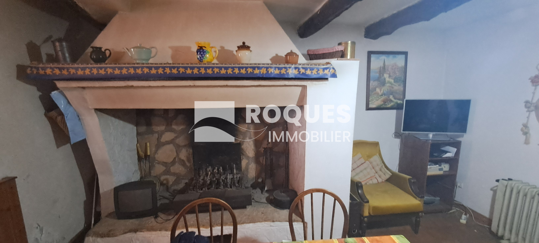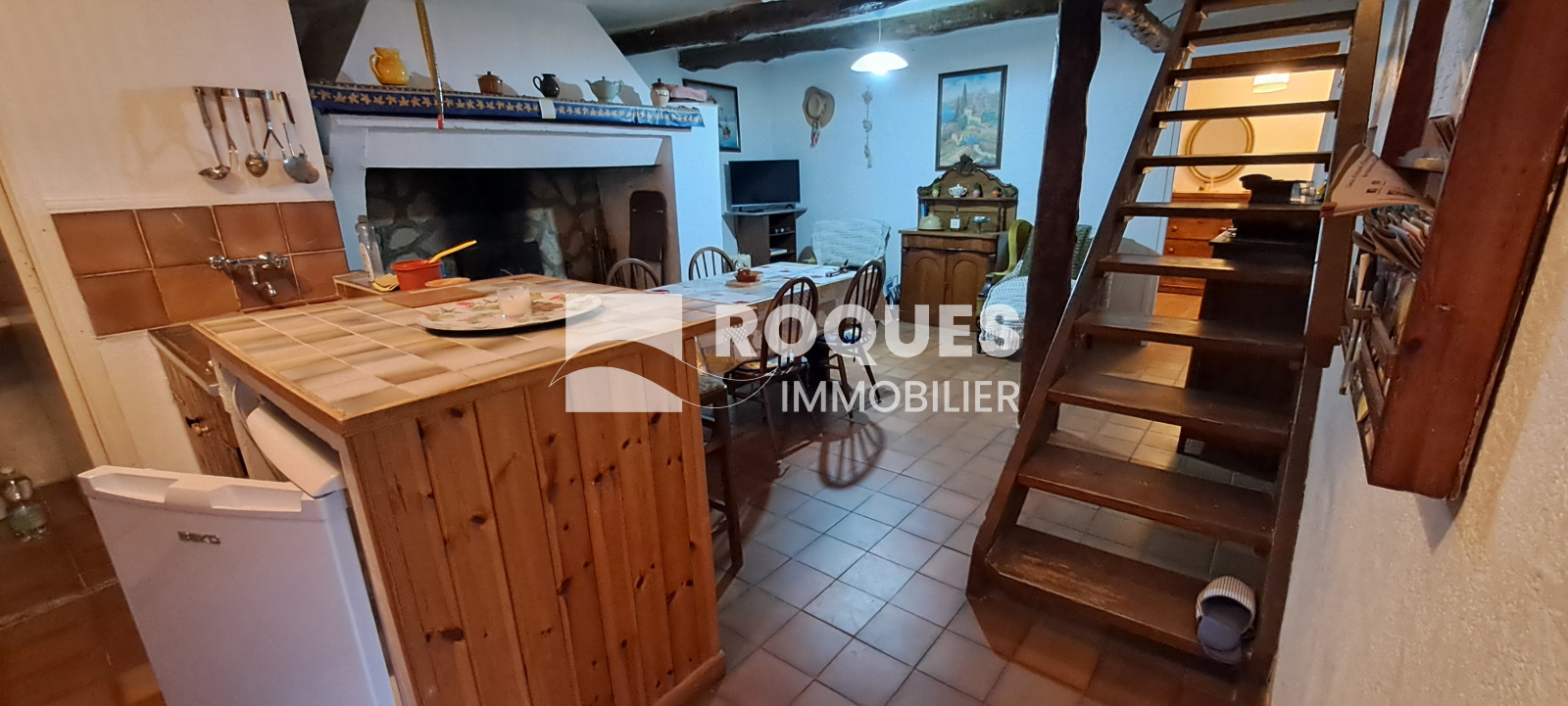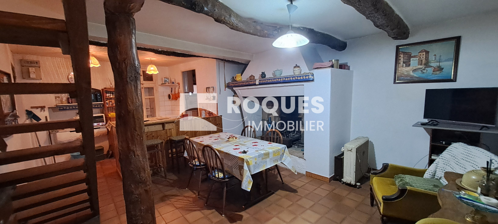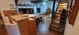 Lieu de vie à l'étage avec grand pièce ouverte de 26 m² et grande cheminée à l'ancienne. Cuisine ouverte. Coin salle d'eau de 3m².