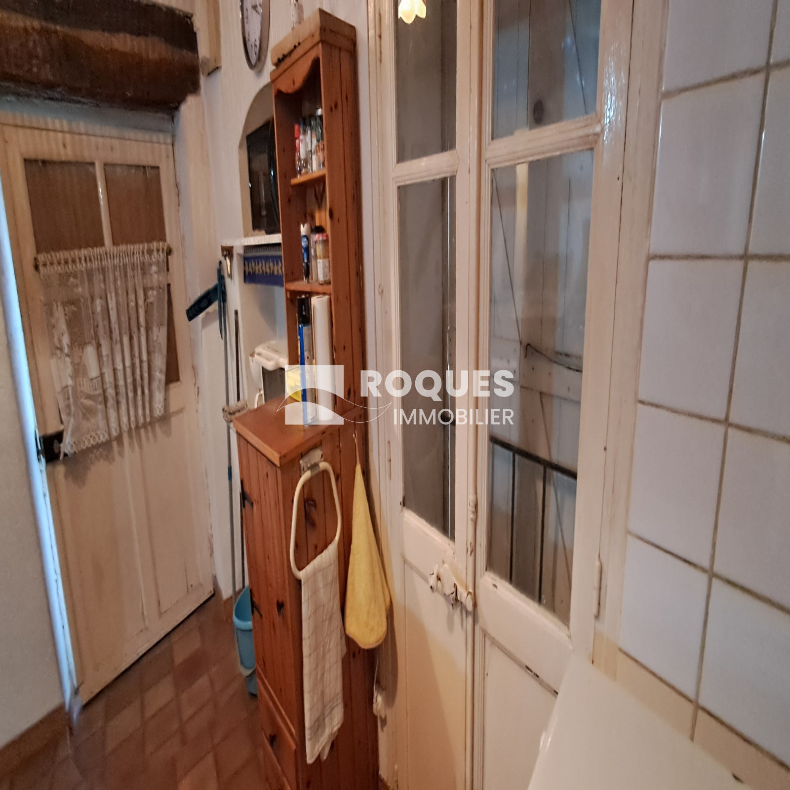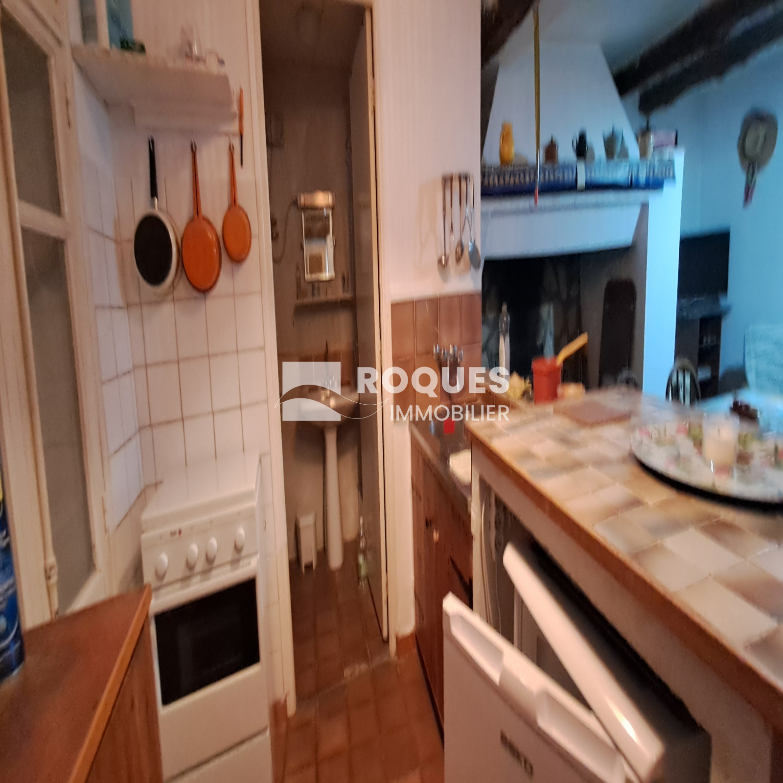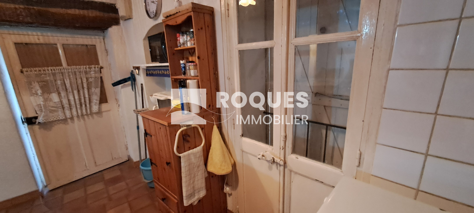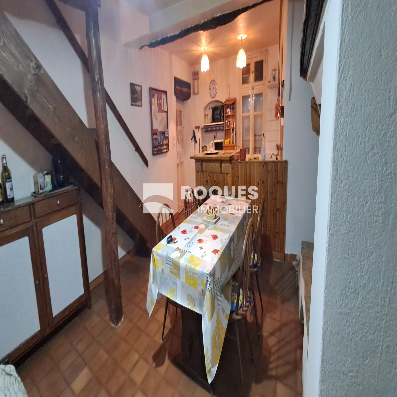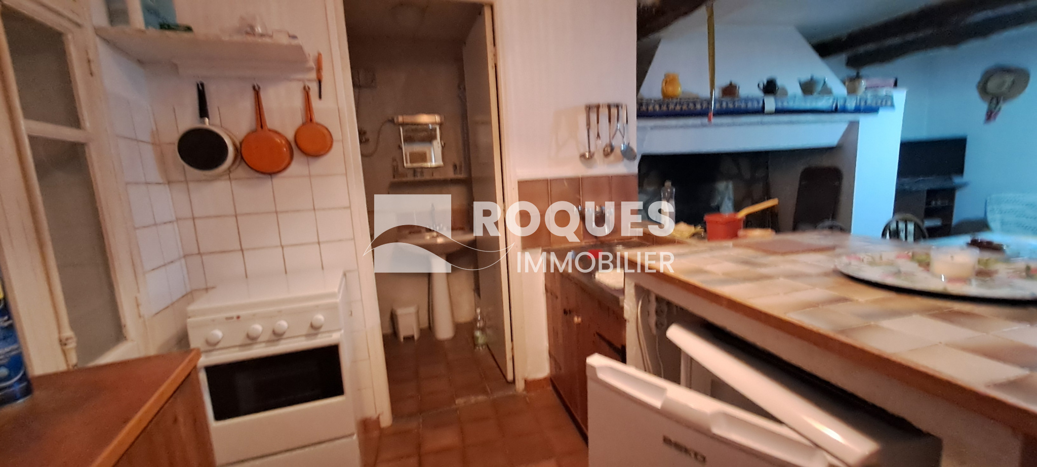 Lieu de vie à l'étage avec grand pièce ouverte de 26 m² et grande cheminée à l'ancienne. Cuisine ouverte. Coin salle d'eau de 3m².