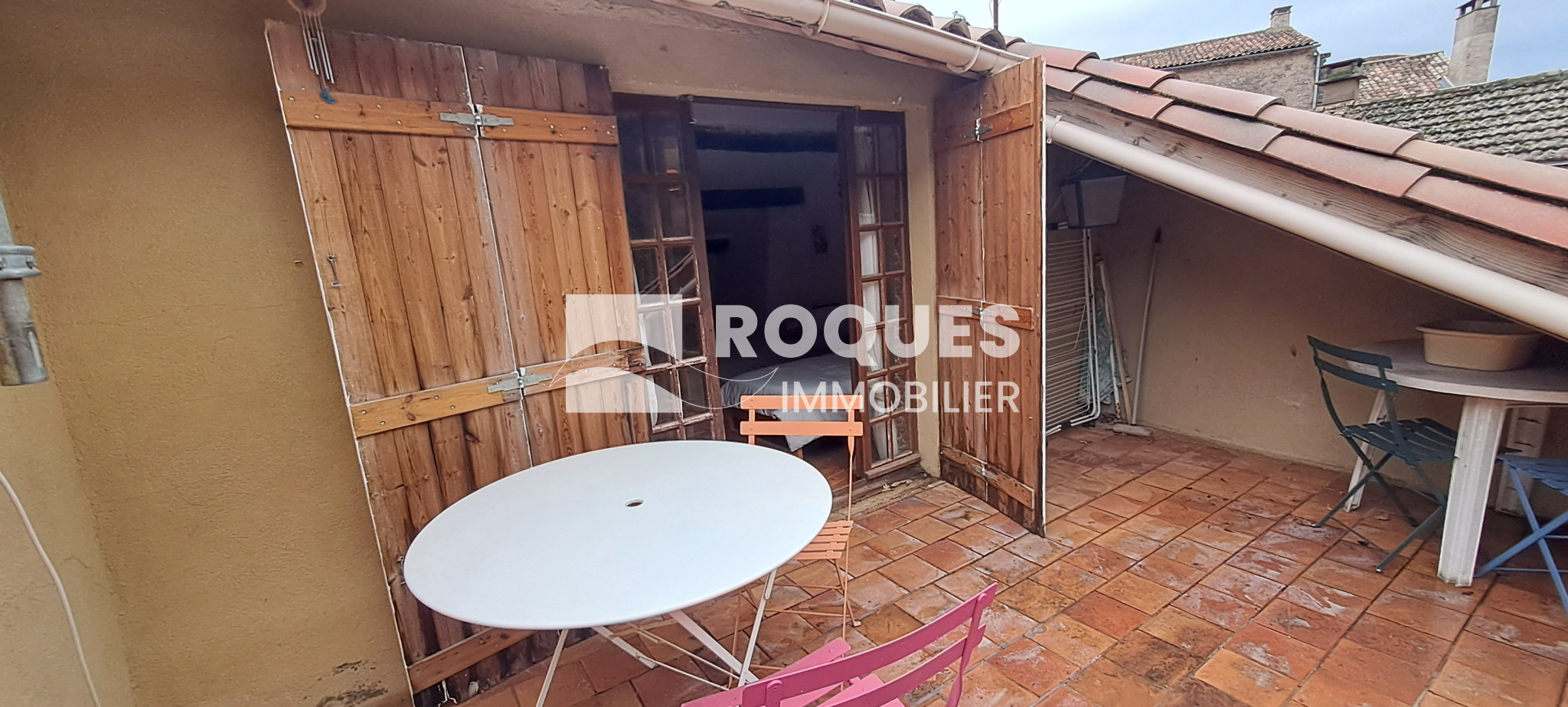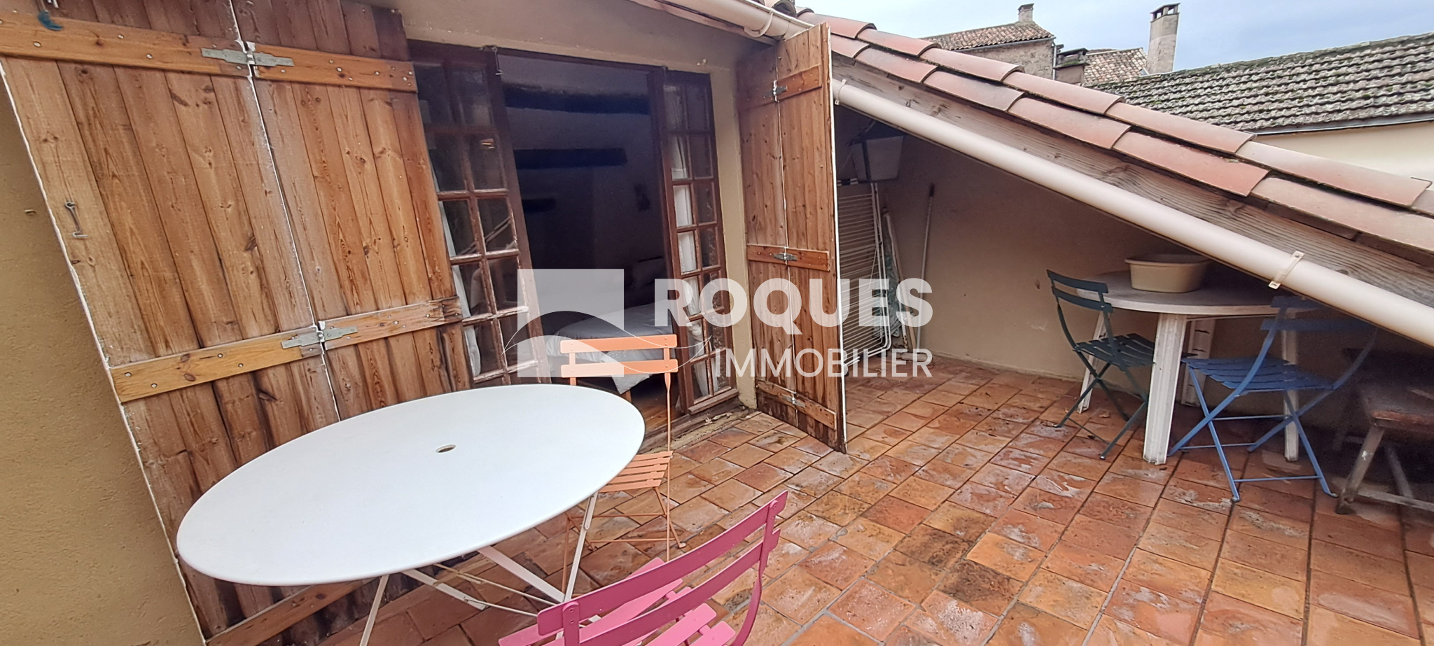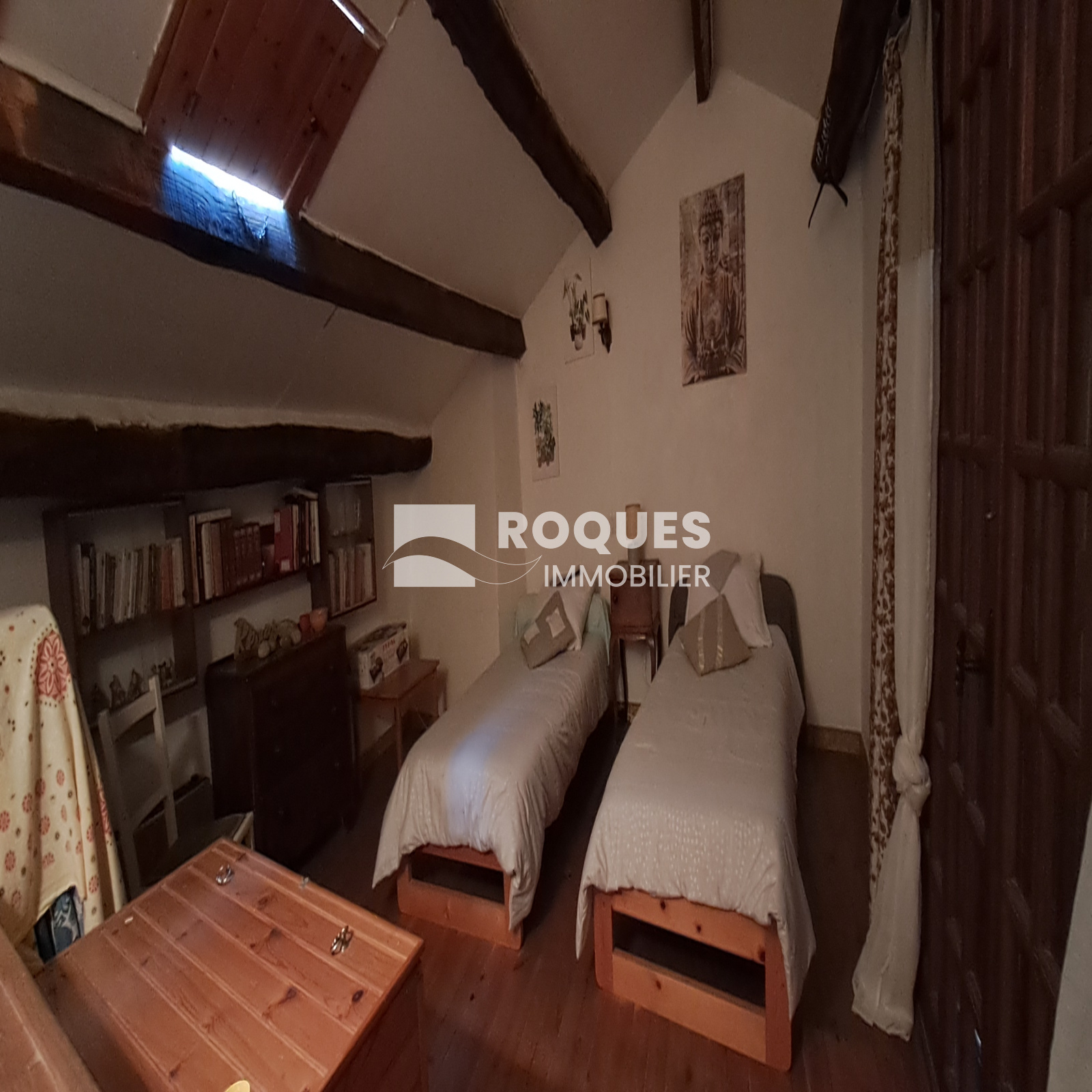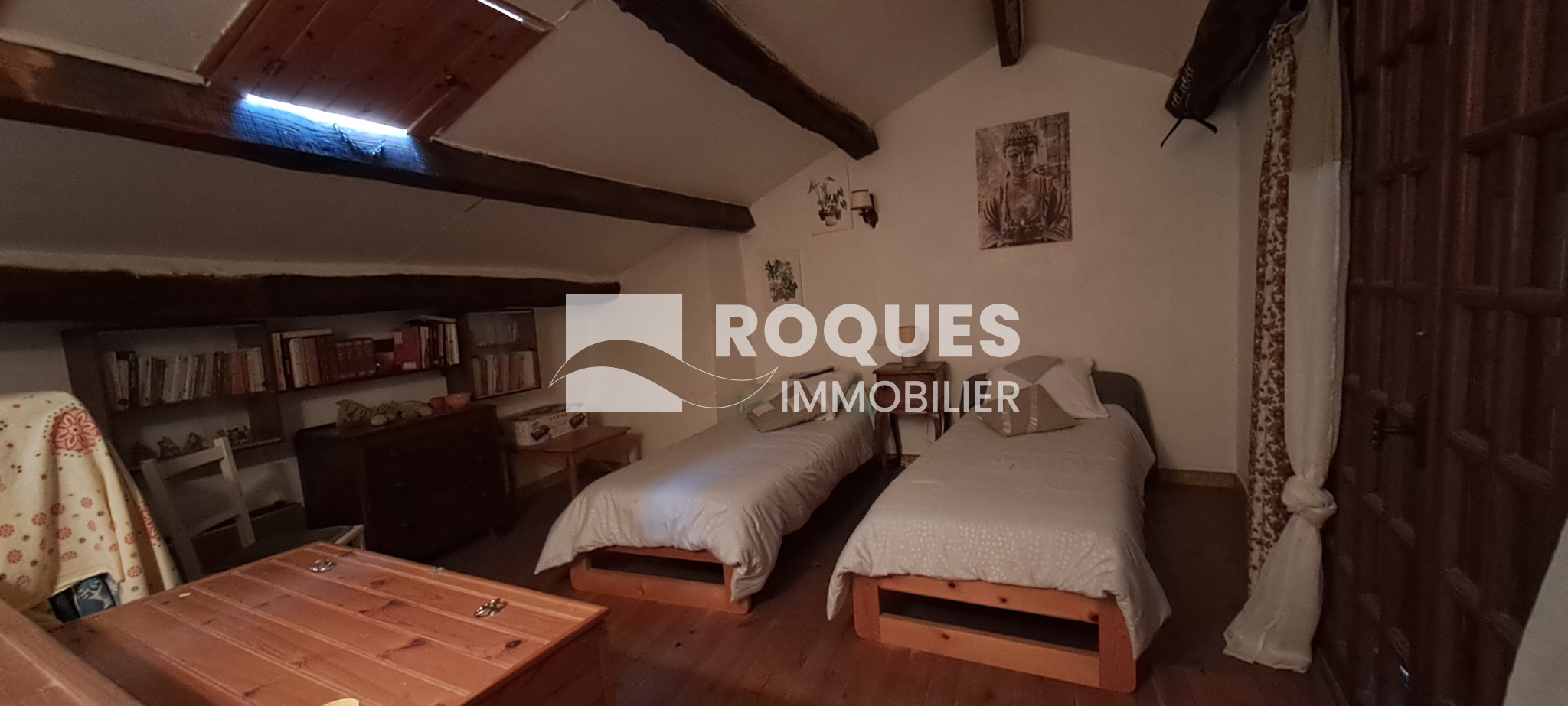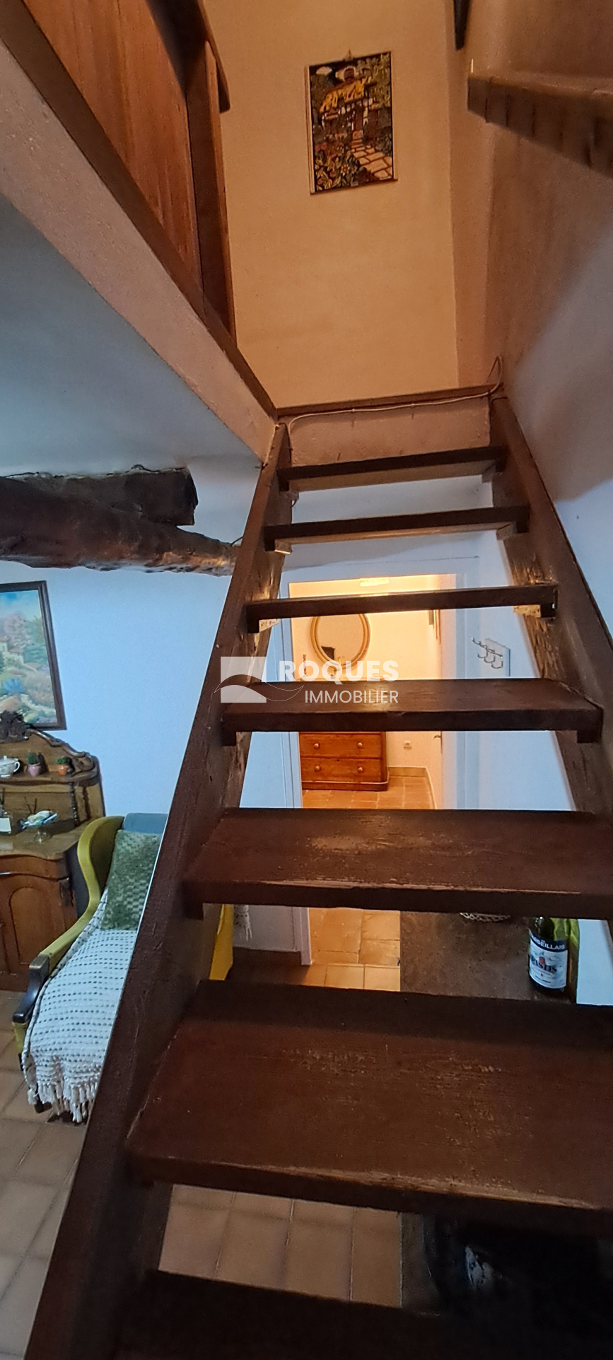 A l'étage, chambre mezzanine sous pente de 15m² avec vélux et accès à une petite terrasse de 8m² offrant une vue magnifique.