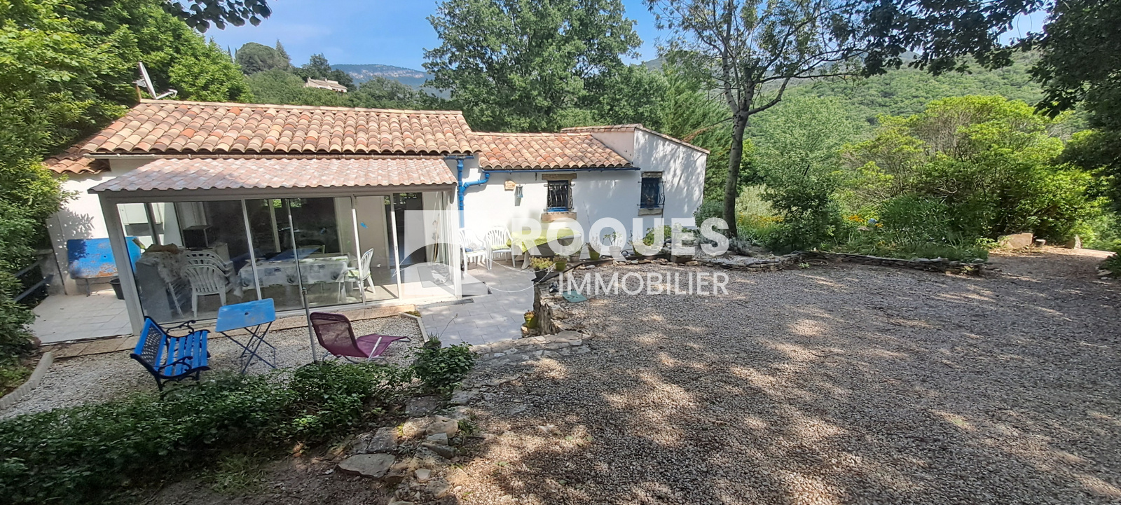 Maison de type Mas, sur terrain arboré de 7605 m² avec très belle vue dégagée. Bel endroit entretenu et calme.