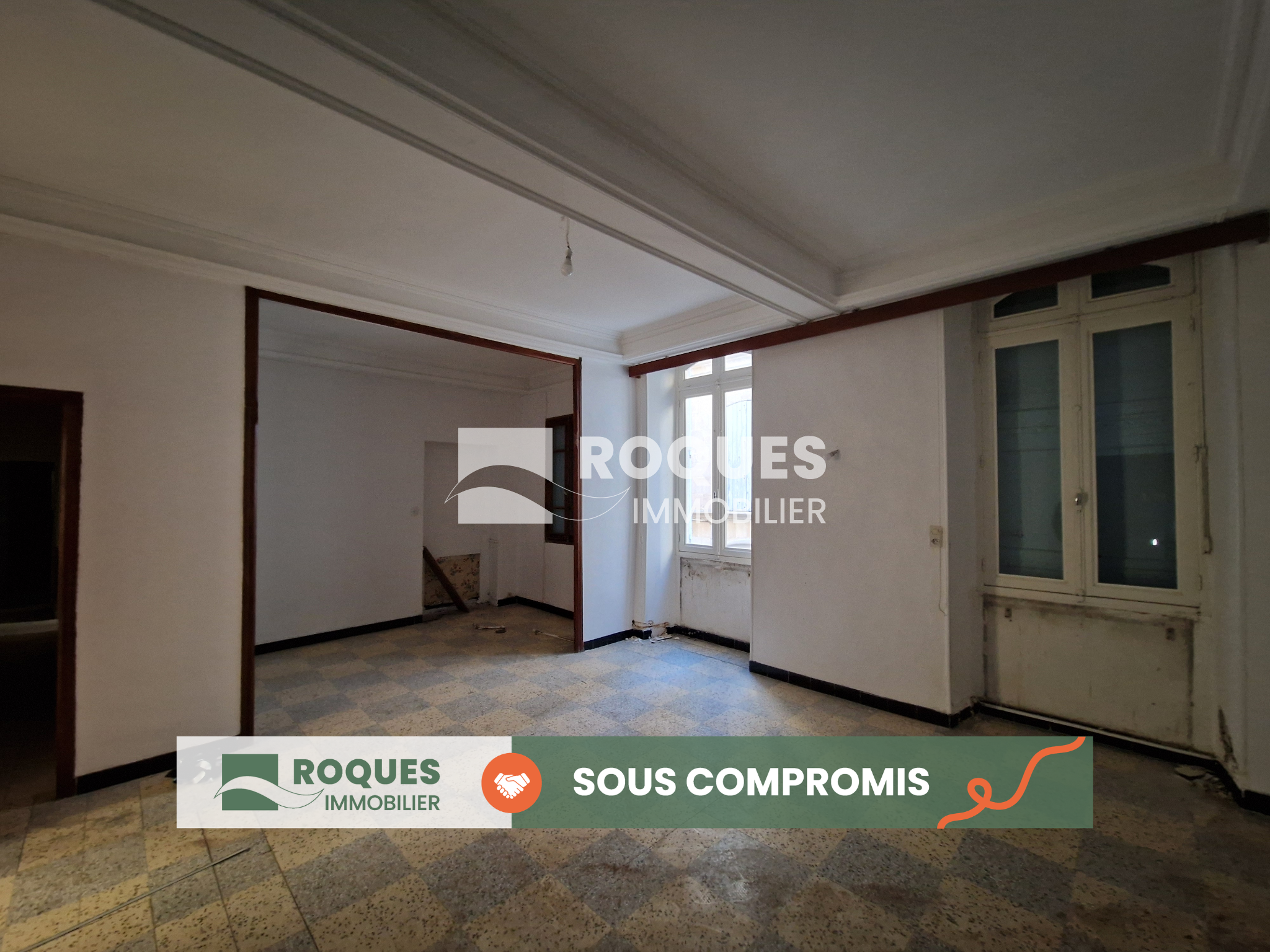 2eme étage: Une pièce traversante 11 m² (dont 7 m² en loi carrez), une chambre mansardée 12 m², (dont 6 m² en loi carrez), une pièce vitrée 11 m²