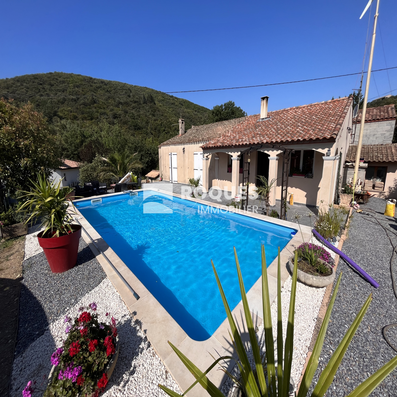 Sur la commune de Taussac-la-Billière, à 5 minutes de Lamalou-les-Bains, à vendre belle villa 5 pièces de 145 m² sur une parcelle de 1312 m². Ce bien comprend : un hall d'entrée, un séjour avec cuisine, 4 chambres, une salle d'eau, une buanderie et un toilette. Il dispose également d'un hangar de 66 m² et d'une piscine (8x4). L'environnement est calme et proche de la nature. Le prix : 297 000 € (FAI).