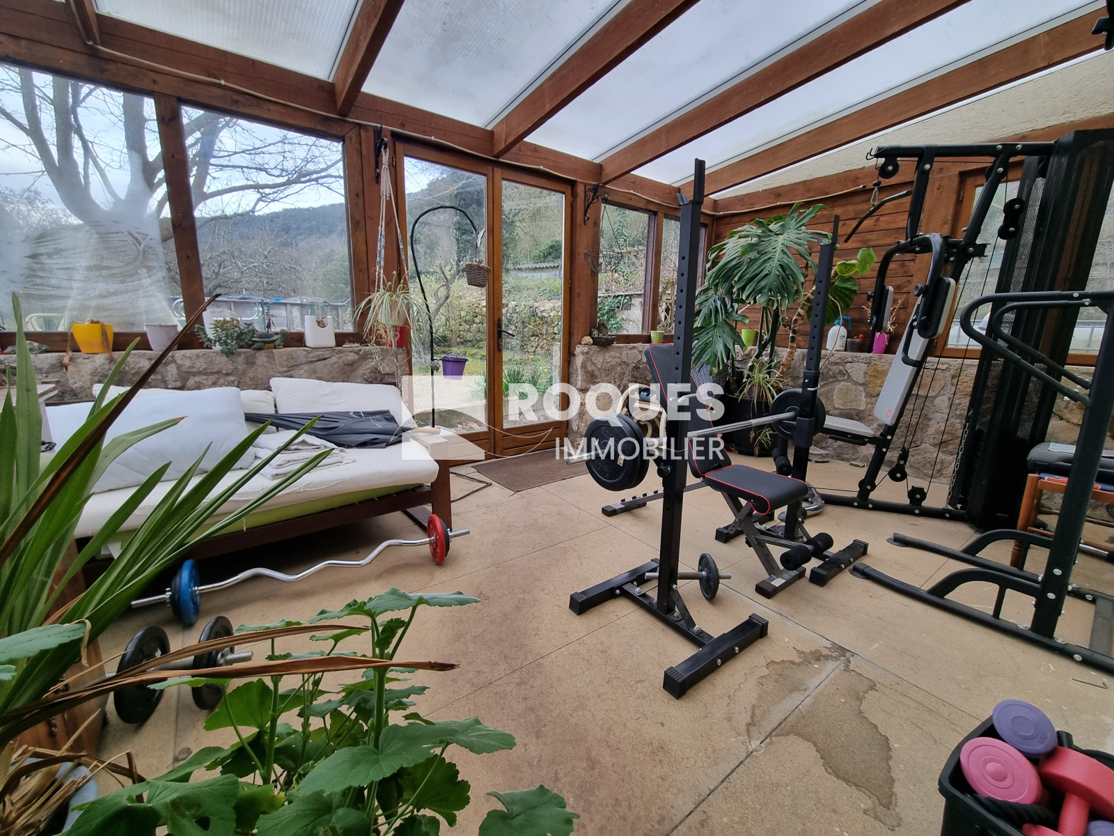 Maison de plain-pied sur un vaste terrain arboré avec annexes et piscine